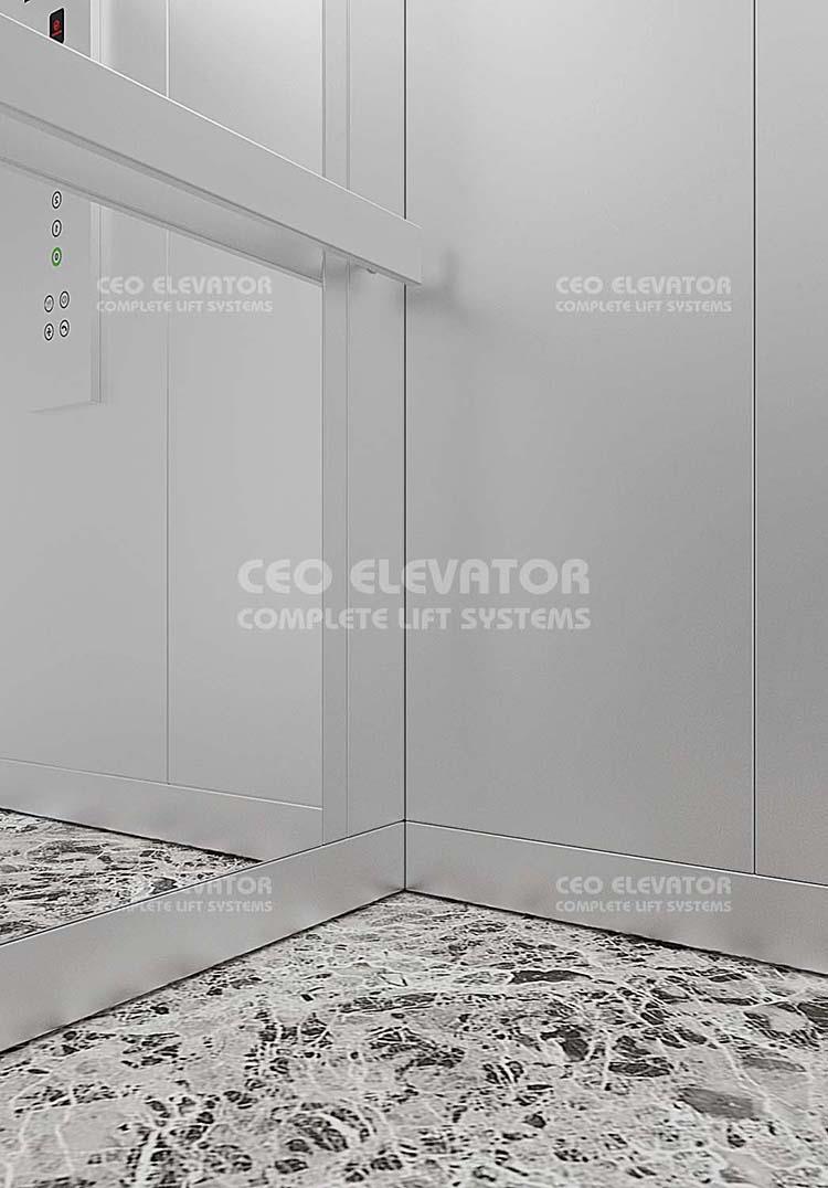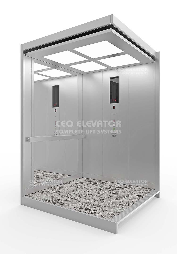 CEO 140 Elevator cabin Cabin: Stainless Steel Cabin Floor: PVC Cabin Ceiling: Laser Cutting Cabin Accessories: Stainless Steel Cabin Mirror: Full Height Our products comply with EN81-20 and EN81-1 standard. Color and patterns may vary in application. All right reserved.